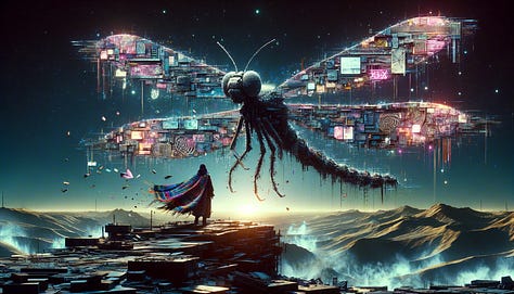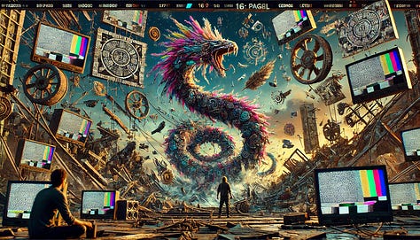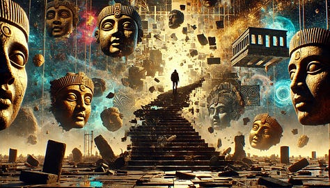 The post-industrial aspect of this aesthetic is not incidental; it is integral to the material condition of contemporary visual culture. As urban centers undergo capitalist extraction and abandonment cycles, their detritus—billboards, shattered glass, obsolete technology—becomes an archive of dispossessed realities. Integrating these elements into a collaged surrealist framework, artists transform industrial refuse into a site of memory and resistance. The absurd juxtaposition of the sacred and the synthetic, the ancient and the mass-produced, exposes the unstable foundations of Western modernity and its aesthetic logic.